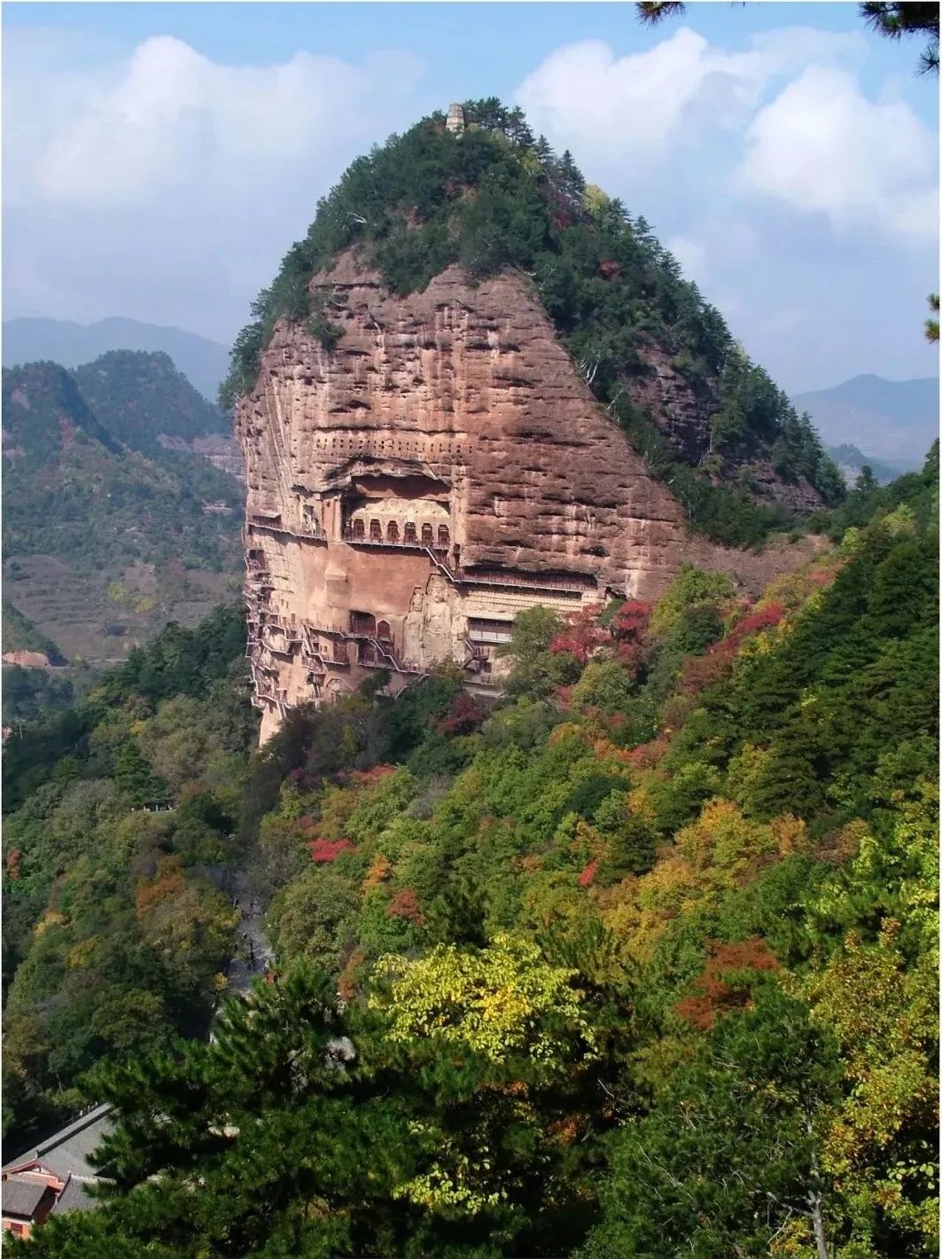 麦积山石窟中还存在不少壁画,其色彩大胆艳丽,丝毫不输莫高窟的风采。