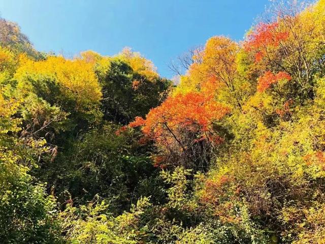 登顶四嘴山,南可远眺太白积雪胜景,北可俯瞰平原渭水之袤。俯瞰群山,像是上帝打翻了画家的调色盘,星星点点的黄色、橘色还有红色晕染了整个山谷,宛如一幅色彩斑斓的水彩画……