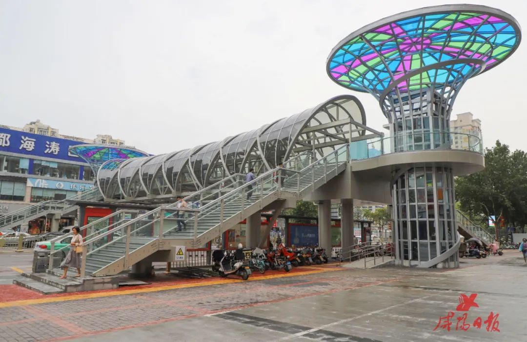 2022年9月15日,我市人民路与团结路口东侧新建人行天桥正式通行。该工程为我市市政重点项目,打造高效、便捷、美观的公共交通设施,完善市区交通网络。(资料图)