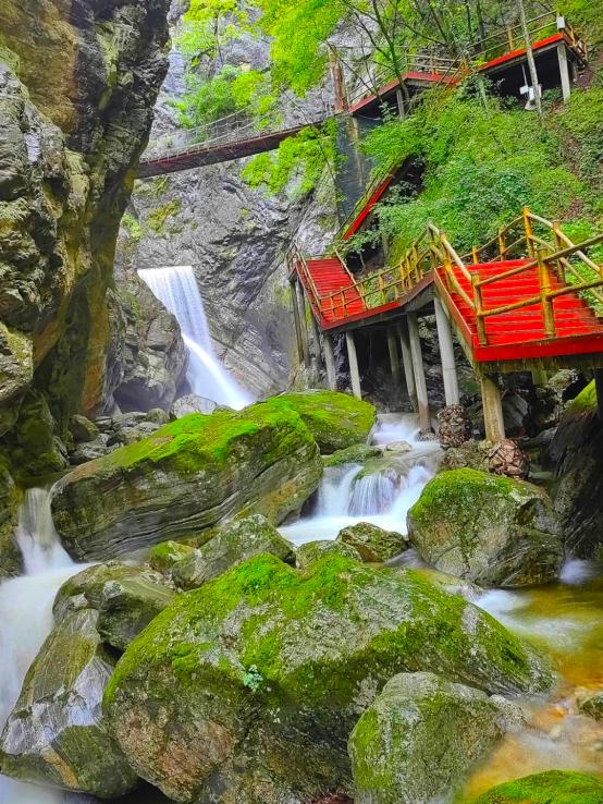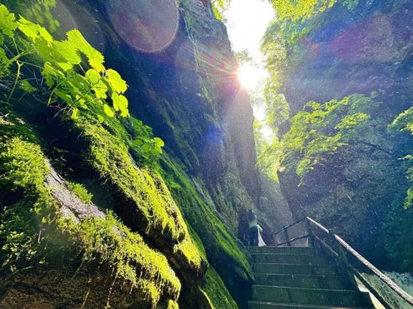 漫步于林,心随风平。羚牛里山泉甘美,草木茂盛,苔藓翠绿,峭壁谷幽,林木间细细流过的泉水,长满青苔的石头,无不输送着源源不断的新鲜氧气,让人总是情不自禁地深呼吸。