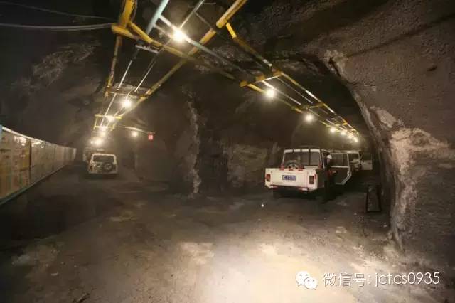 二矿区的主斜坡道,7096米,垂直深度744米,亚洲最长的斜坡道。这是井下设备、人员、材料运送以及井下进风的主要通道,可以坐车从这里直接进入地下采场。