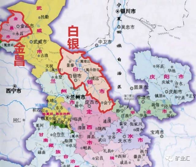 白银从原来的兰州市中释出靖远县、从定西释出会宁县、从武威释出景泰县,升格为地级市,成为兰州西北方向通往宁夏和内蒙古的交通节点。