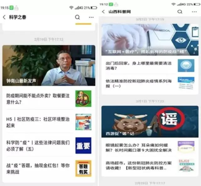 山西科技传媒集团通过网站、“山西科协”“山西科普网”“科学之春”等30余个微信公众号发布文章,截至4月12日,集团以图解、微视频、挂图、H5海报、漫画、动画、小册子等多种形式编制疫情防控、指导复工复产的科普资源,共计220余件。