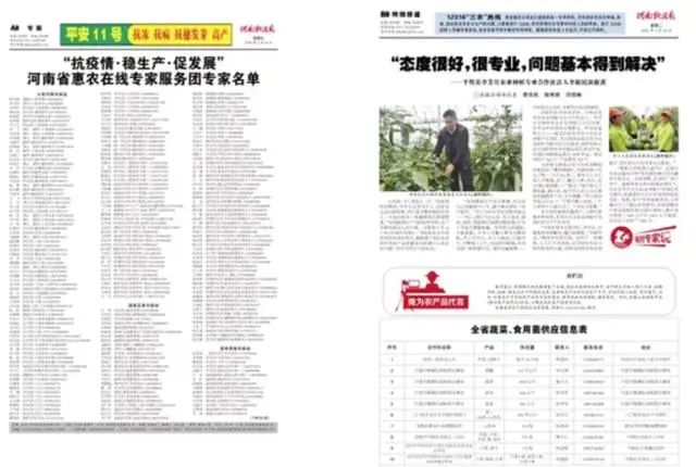 2月7日,河南科技报社成立活动办公室,迅速组建专家在线服务团。通过详细整理分类,专家由360多名组成,共分为疫情防控(10位)、大田作物(123位)、蔬菜瓜果(83位)、畜牧养殖(96位)、水产养殖(8位)、农业机械(10位)、三农经济(7位)、农业规划(3位)、农业产业化(18位)、法律服务(2位)等十个专家小组。