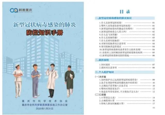 编辑出版新冠肺炎疫情防控知识手册,免费派发到基层。重庆科技报社编辑印刷了《新型冠状病毒感染的肺炎防控知识手册》以及《关于新型病毒,我们能做什么》《万众一心抗击疫情》《戴口罩》《勤洗手》《多通风》《不聚会》《适当锻炼》等系列公益海报,让公众了解新冠肺炎的就医流程、个人防护、居家防护、工作区域防护知识及如何疫情带来的心理健康问题。