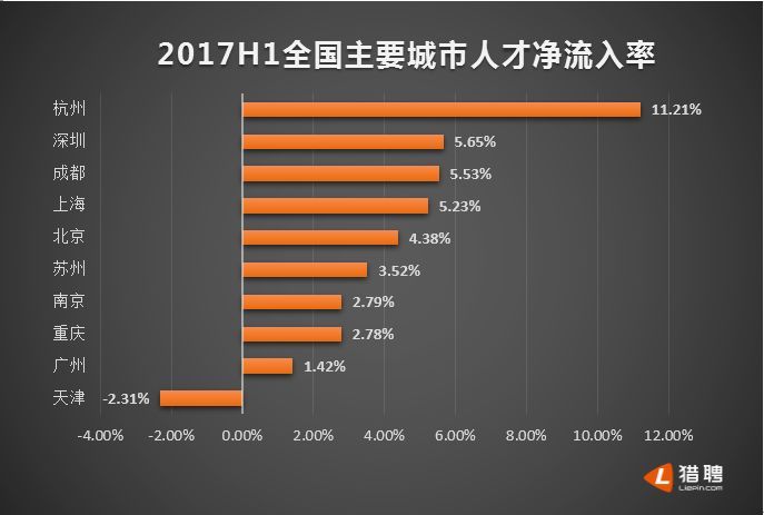 在这些诱人的“留才”政策下,杭州俨然成为新的人才集中地。猎聘大数据显示,杭州近年来的人才净流入率持续位居全国之首。