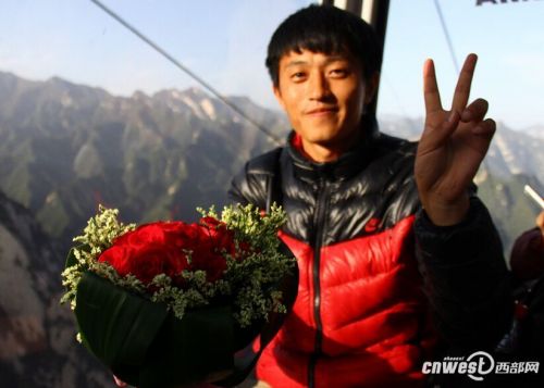 小丁告诉记者,自己五年前与未婚妻在华山相识,已经定了日子要举办婚礼,但一直没有正式求婚。小丁说,他想给女朋友一段浪漫难忘的记忆,所以设计出了这个重走华山路,在山顶日出时分下跪求婚的桥段。