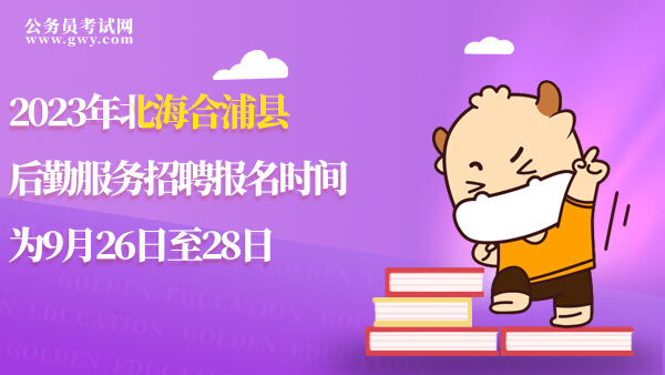 2023年北海合浦县后勤服务招聘报名时间为9月26日至28日 2023年北海合浦县后勤服务招聘报名时间为9月26日至28日,各位考生需在规定时间内进行现场报名,报名时需提交本人身份证、毕业证书、学历和学位证书的原件和复印件等报名材料。在此,广西事业单位考试网特整理相关资讯如下:...