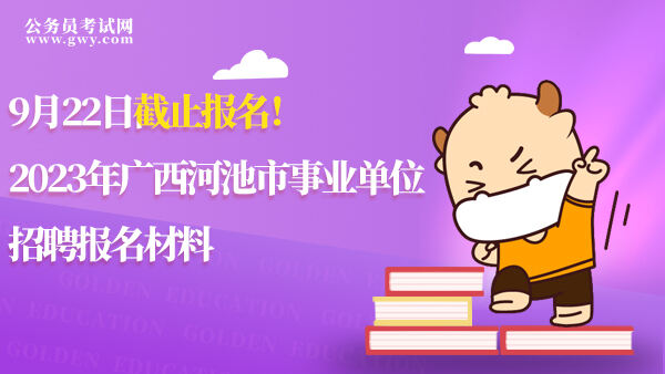 9月22日截止报名!2023年广西河池市事业单位招聘报名材料 2023年广西河池市事业单位招聘报名采用网上报名或现场报名形式,网上报名时间截止9月22日下午18:00,现场报名时间为9月23日(星期六)9:00-14:00。面谈之前,各位考生需准备2023年广西河池市事业单位招聘报名材料,在此,广西事...