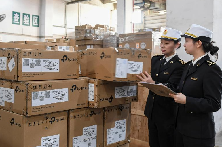 11月27日,在深圳前海综合保税区深圳市美邦国际仓库,蛇口海关关员查验即将出口的货物。今年以来,深圳港紧抓全球经贸复苏及国际航运市场回暖机遇,集装箱吞吐量保持高位运行,经营业绩持续向好。