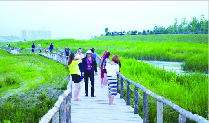岐山县依托国家级岐渭水利风景区,倾心打造“百里画廊”示范区,其中十里芦苇景观长廊,是极富地域特色的渭河大景观带。人们在这里漫步,水就在脚边,时不时有鱼儿跃出水面,一阵风吹来,芦苇摇曳生姿,似曼妙少女让人顾盼流连。记者问:“为啥这里的芦苇长得这么好?”岐山县治渭办副主任魏军刚回答:“原来这里的河滩杂草丛生,根本没有芦苇,从2012年开始,我们从杭州、白洋淀等地引进卡开芦、金叶芦、荷花等 24种水生植物,不断实验水边扦插、坡面压条、旱地埋根等方法,水生植物一年比一年长得好,才有了现在的效果。”
