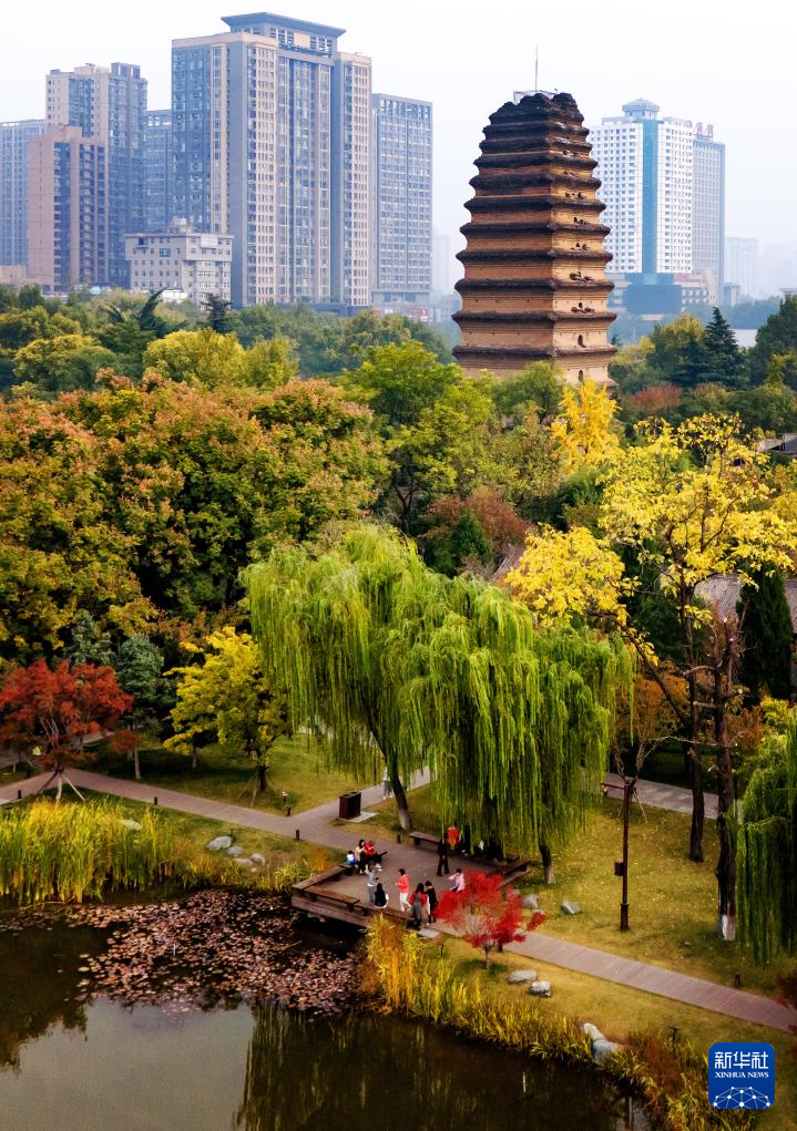这是西安大雁塔(无人机照片,11月9日摄)。