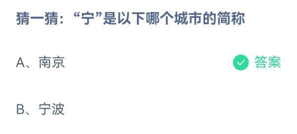 “宁”是哪个城市的简称?这道题是蚂蚁庄园小课堂4月3日的问题,答案选项有南京和宁波,那么正确答案是选什么?下面和小编一起来看看蚂蚁庄园小儿课堂4月3日的问题答案。