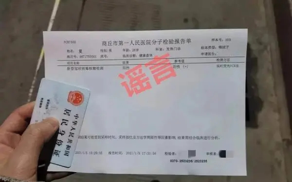 网传商丘市第一人民医院1例核酸检测阳性?谣言