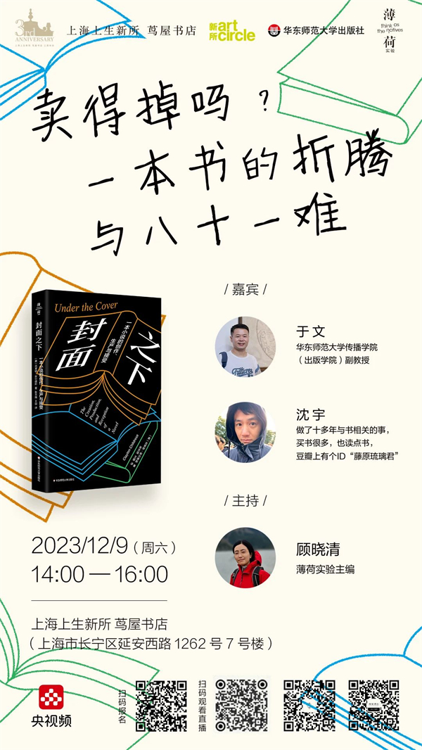 作家刚出道就解雇了自己的代理人?编辑跟合作方性格不合,但为了将来合作又不能翻脸?营销人好不容易努力出圈却惨遭差评?出版商最喜欢的书在电商那里只能当亏本促销书?好书并不适合读书会来共读?《封面之下》讲述了一本书如何经历九九八十一难才来到读者手中。12月9日下午,我们邀请到华师大传播学院(出版学院)副教授于文、读书达人沈宇以及做书人顾晓清,分享自己跟书打交道的日常。