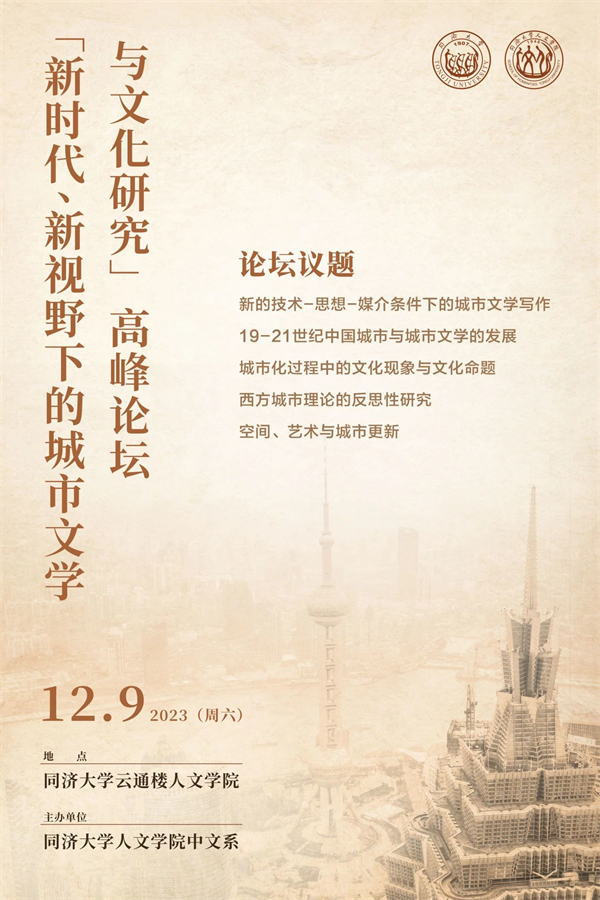 地点:杨浦区赤峰路74号同济大学人文学院云通楼四楼报告厅