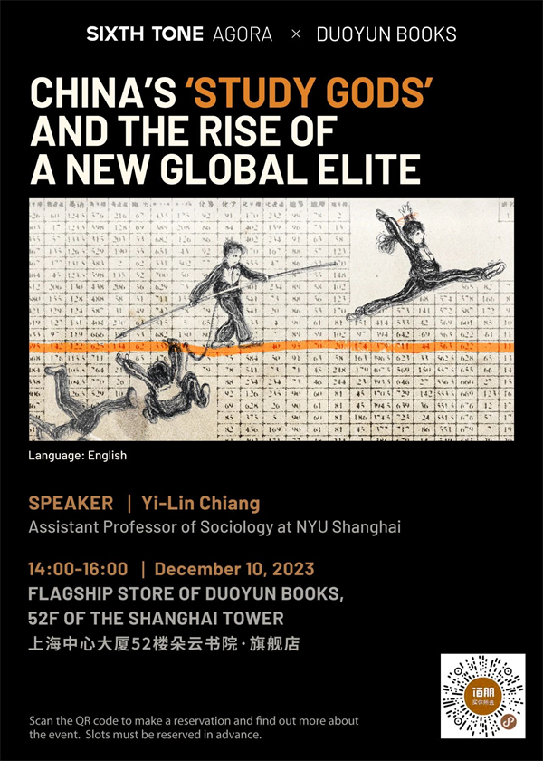 12月10日下午,上海纽约大学助理教授姜以琳将做客朵云书院·旗舰店,带来有关中国“学神”如何为全球竞争做准备的演讲。姜以琳教授曾进行长达八年(2012-2019)的田野调查,在此基础上撰写了《学神:中国精英教育现场一手观察》一书。在本次讲座中,姜教授将揭示中国的“学神”们在争取全球菁英身份的过程中所学会的能力,他们如何保持这种地位,以及他们如何依靠父母和其他外部资源来克服前进道路上的潜在障碍。