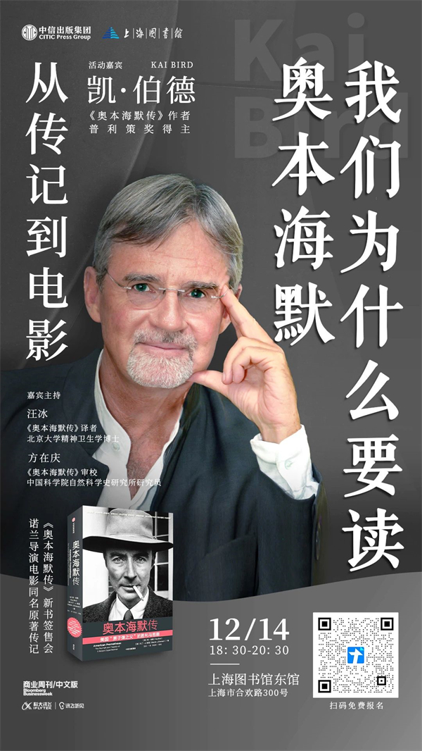 随着诺兰电影《奥本海默》热映,这位已逝世半个多世纪的科学家重回大众视野。这部影片的原著传记和灵感来源《奥本海默传:美国“原子弹之父”的胜利与悲剧》,是关于奥本海默最完整的一部传记,写作时间长达25年,本书作者凯·伯德和马丁·J.舍温采访了奥本海默的近百名密友、亲人和同事,参考了超5万份文献记录,获得2006年普利策奖。12月14日晚,凯·伯德将在上海图书馆(东馆)和读者朋友面对面,分享创作背后的故事。活动特别邀请到《奥本海默传》中文版译者、北京大学精神卫生学博士汪冰,和《奥本海默传》审校、中国科学院自然科学史研究所研究员方在庆,作为嘉宾主持,与凯·伯德畅聊传记与电影背后真实的奥本海默。