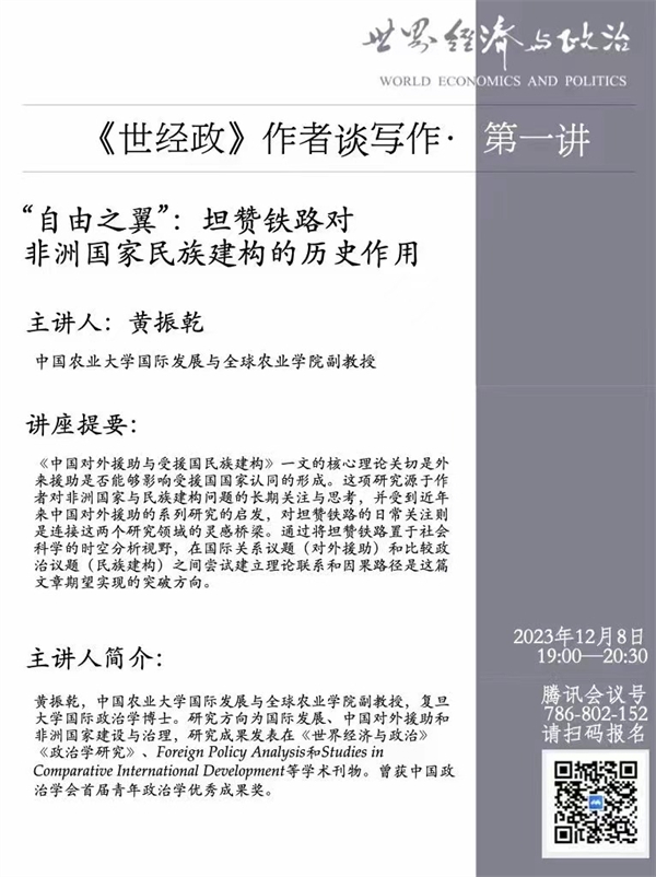 《世界经济与政治》作者谈写作第一讲。《中国对外援助与受援国民族建构》一文的核心理论关切是外来援助是否能够影响受援国国家认同的形成。这项研究源于作者对非洲国家与民族建构问题的长期关注与思考,并受到近年来中国对外援助的系列研究的启发,对坦赞铁路的日常关注则是连接这两个研究领域的灵感桥梁。通过将坦赞铁路置于社会科学的时空分析视野,在国际关系议题(对外援助)和比较政治议题(民族建构)之间尝试建立理论联系和因果路径是这篇文章期望实现的突破方向。