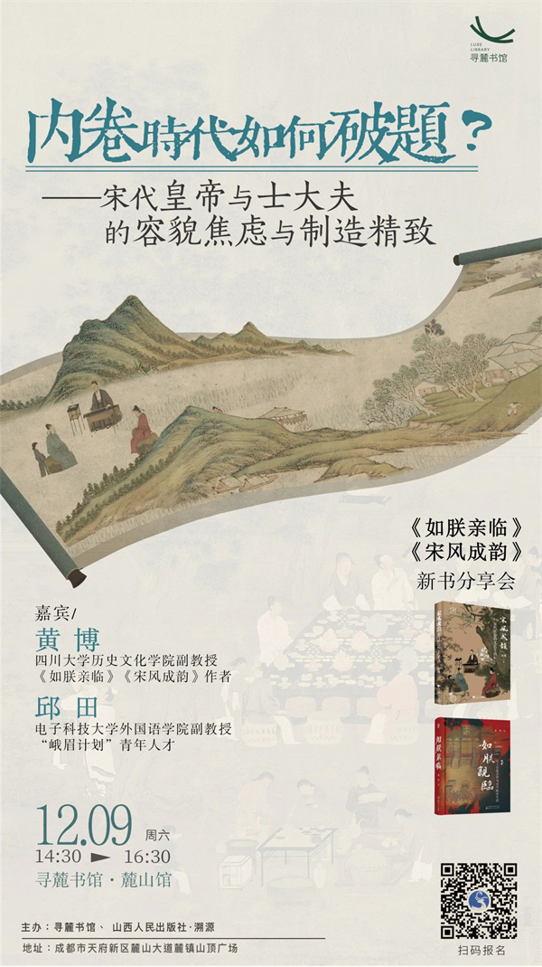 近年来,随着相关畅销书和影视剧的流行,“宋史热”正逐渐成为一种文化现象。12月9日,我们邀请到四川大学历史文化学院副教授、《如朕亲临》《宋风成韵》作者黄博,电子科技大学外国语学院副教授邱田,在寻麓书馆展开对谈,邀请各位读者一起了解历史人物有趣的生活侧面,走进更生动、更鲜活的历史现场,寻找回应当下生活困境的可能性。