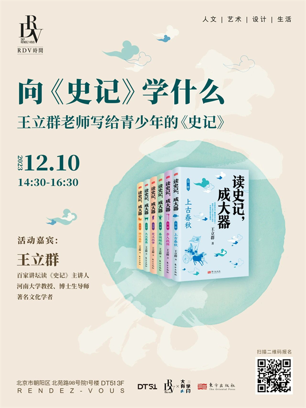 著名文化学者、河南大学文学院教授、博士生导师,百家讲坛主讲人王立群教授以57年学术功底,花费三年时间专门为孩子创作了《史记》读本——《读史记,成大器》。12月10日下午,我们特别邀请了王立群做客DT51,一起走进从黄帝到汉武帝三千年的风云变幻、金戈铁马,让孩子从完璧归赵、卧薪尝胆、负荆请罪、毛遂自荐、霸王别姬这些耳熟能详的典故中长才智,开格局,成大器。