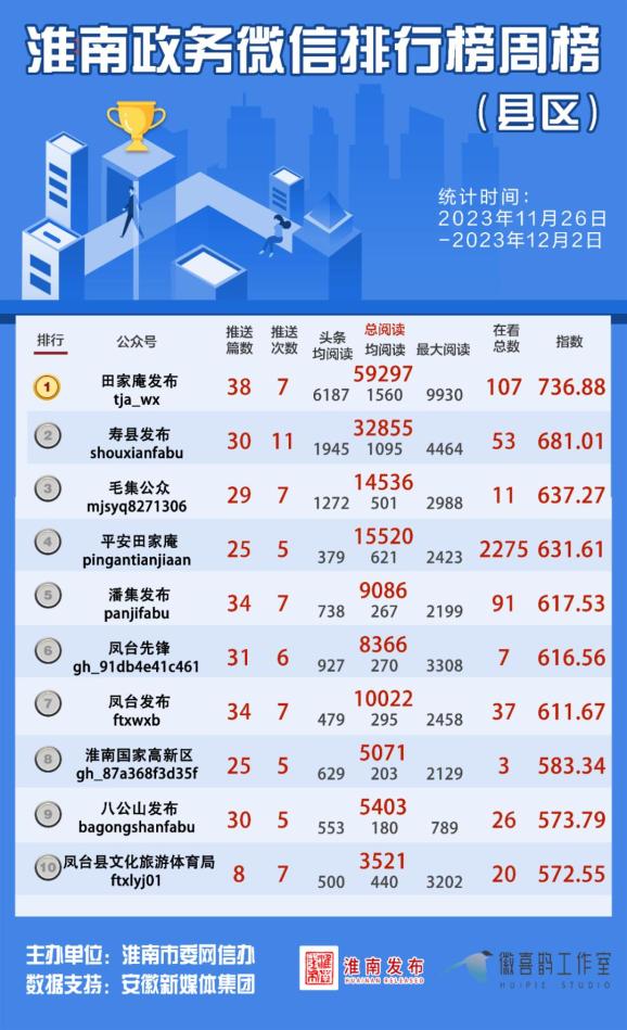 淮南本期政务微信榜单