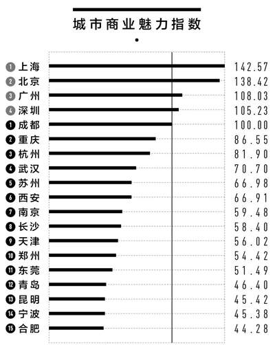 这是该研究机构连续第8年发布此榜单,通过近200个品牌、17家互联网公司和数据机构的城市大数据,围绕商业资源集聚度、城市枢纽性、城市人活跃度、生活方式多样性和未来可塑性五大一级维度来评估337座地级及以上城市得出此榜。