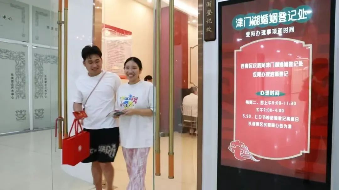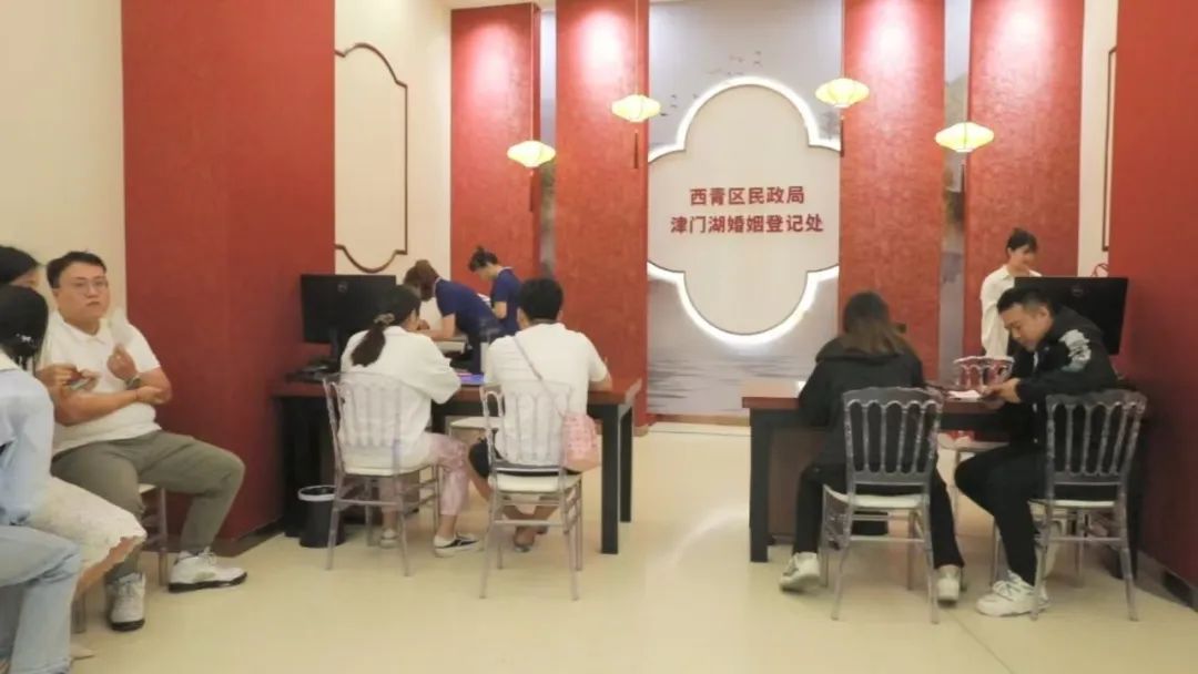 特点:津门湖婚姻登记处是一处中式婚姻登记场所,其辐射津门湖街、大寺镇、李七庄街、王稳庄镇、赤龙南街,在西青区形成了“一南一北”工作格局,方便西青区南部街镇群众办理结婚登记。