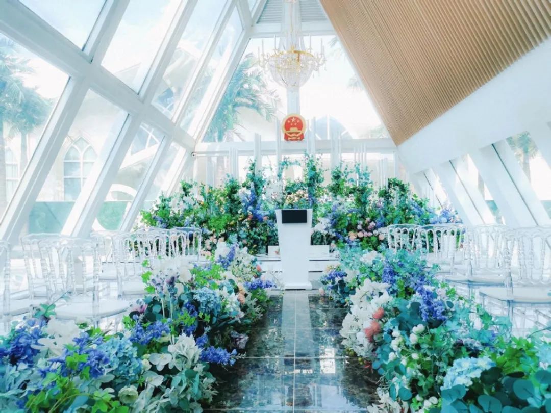 特点:婚姻登记处面积300平米,主题公园占地约270亩,交通便利、设施齐全,可为群众提供结婚登记、补发婚姻证、颁证等服务。新人们在这里不仅可以享受婚姻登记服务,还可以在室内、室外多个中西式的婚礼场景打卡拍照、集体颁证、举办仪式,满足了年轻人对浪漫和仪式感的追求,让新人们获得满满的幸福感和满足感。