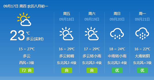西安市气象台2020年9月16日16时发布天气预报:受偏北气流影响,近期西安市以晴到多云天气为主。具体天气预报如下: