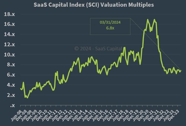 过去 16 年,SaaS 平均估值倍数变化|数据/图片来源:SaaS Capital
