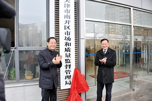 2014年7月30日,经党中央、国务院批准同意,在新一轮机构改革中,天津整合质监、工商、食药三个部门,成立了天津市市场和质量监督管理委员会,形成了新的“市场和质量监管”模式。新的体制突出“质量”元素,主要目的就是充分发挥体制优势,实施大质量市场监管,形成监管合力,更好地为实施质量强市、创造“天津质量”提供制度和组织保障。