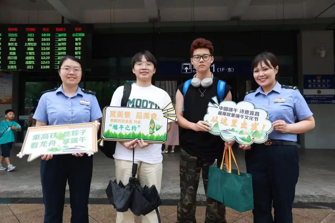 为服务各地游客畅游屈原故里尽享端午盛宴,宜昌东站提前联系公交集团、汽车站,安排从火车站直达屈原故里的公交、大巴,实现“铁路+公交”无缝换乘,畅通旅客出行“最后一公里”。宜昌东站还为老弱病残孕等重点旅客开辟绿色通道,安排专人引导,组织青年志愿者有序开展行李搬运,对电梯、楼梯等重点部位做好提醒和引导,全力做好端午文化节客流组织和旅客服务工作。