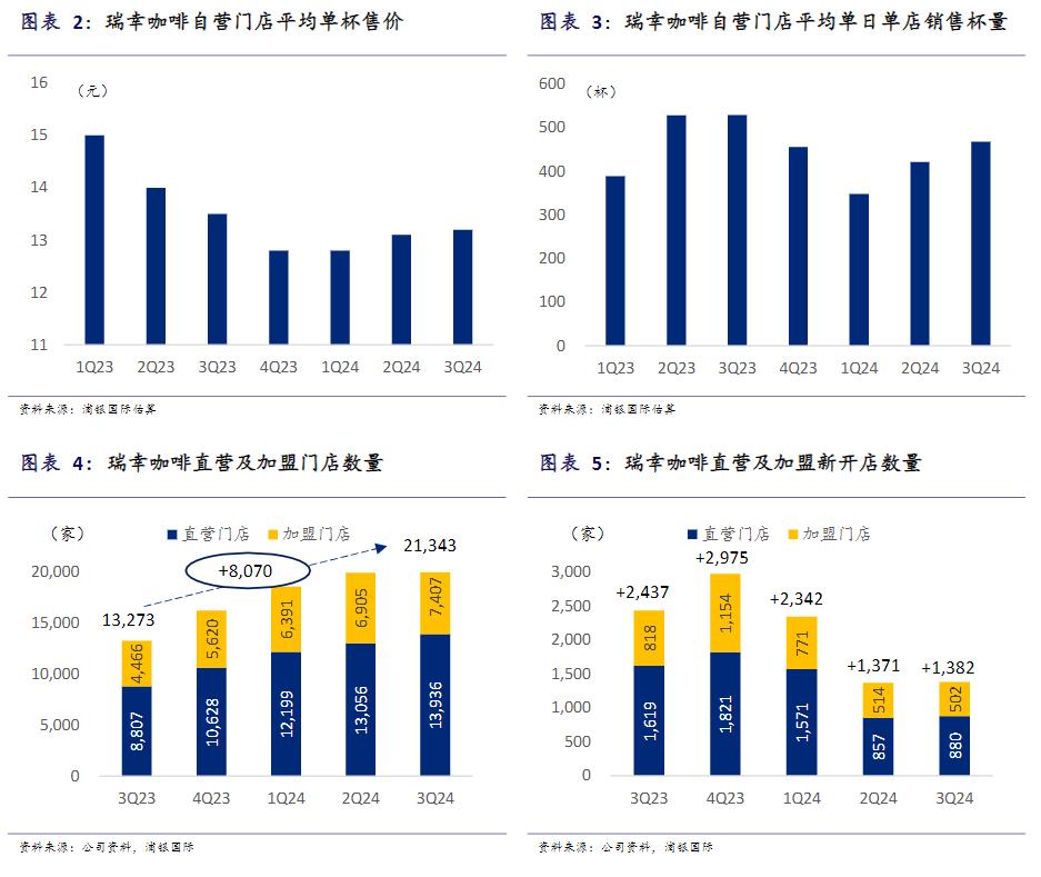 2024 年初,瑞幸率先结束了将近一年的 9.9 价格战,仅有部分品类保持该优惠政策;从 Q2 开始,瑞幸门店扩展减缓。Q3 财报发布之后,瑞幸管理层表示,相较过去几年的大规模扩张,公司未来会采取更为谨慎的开店节奏。