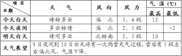 生活提示: 虽然今天白天的最高气温与昨日相比变化不大,但午后有3、4级北风,体感温度要低一些,请注意防风保暖。
