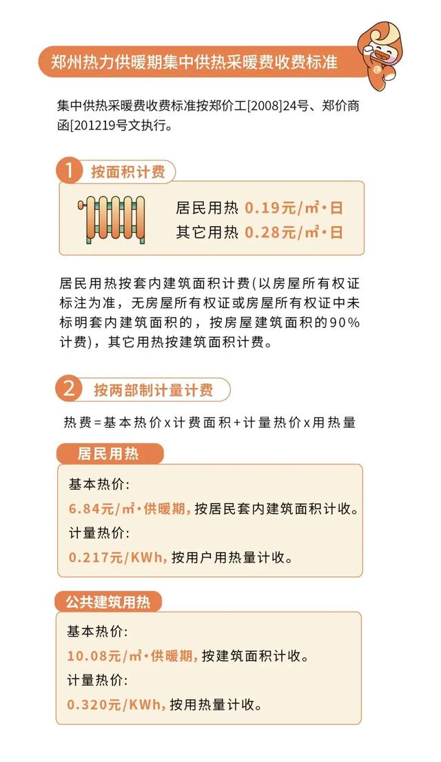 其中,居民用热基本热价6.84元/㎡•采暖季,计费面积以房屋所有权证标注的套内建筑面积计收,无房屋所有权证或房屋所有权证中未标明套内建筑面积的,按房屋建筑面积的90%计费。计量热价0.217元/kWh,按用户用热量计收。公共建筑用热基本热价10.08元/㎡•采暖季,按建筑面积计收。计量热价0.320元/kWh,按用热量计收。