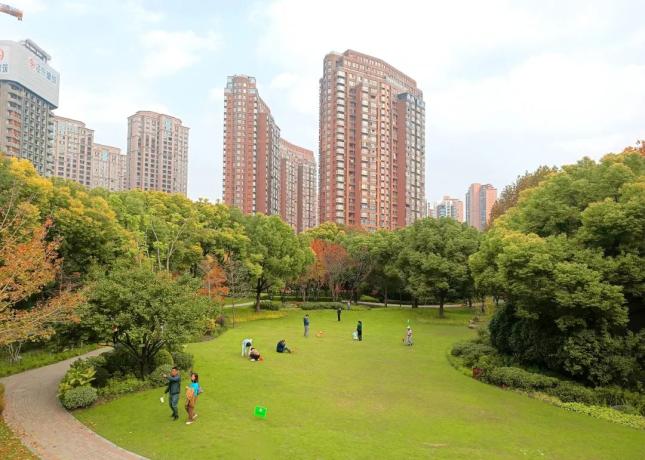 没有边界和闸门,下楼过街就是公园内部,完完全全地开放出来