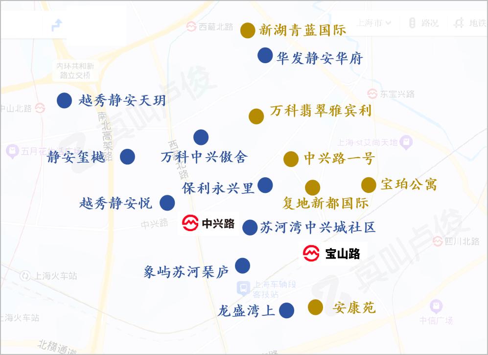 目前已交付的楼盘共有9个,我用黄色标注了一些