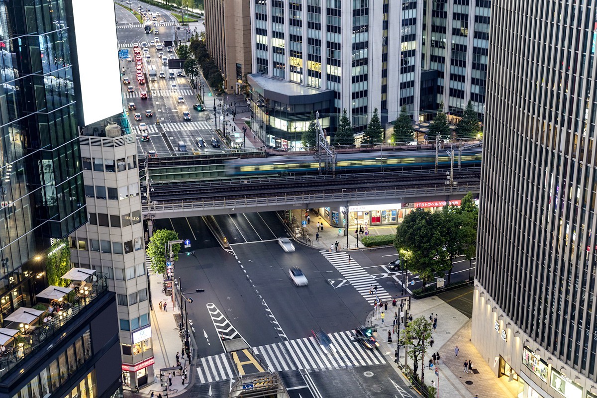 从东京乘坐新干线前往大阪,出站后借助扶梯和连廊,步行穿越多家商场,途经饭店、咖啡厅、电影院、书城、会议厅等,头不见天即到达住地,站内还有直达周边城市和景点的巴士和停车场。