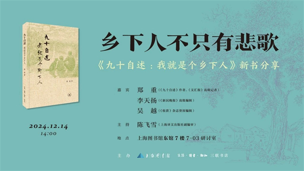 上海|乡下人不只有悲歌——《九十自述:我就是个乡下人》新书分享