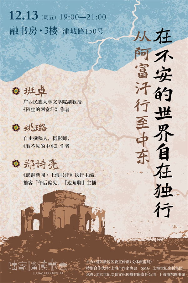 灾难符号之外,真实的阿富汗与中东究竟是怎样的?除去颠沛流离,那里的人还拥有着怎样的人生?也许真实的答案会颠覆我们的想象,也许我们对于生命的理解会变得不同。周五晚,我们邀请到广西民族大学文学院副教授、《陌生的阿富汗》作者班卓,自由撰稿人、摄影师、《看不见的中东》作者姚璐,与《澎湃新闻·上海书评》执行主编、播客主播郑诗亮,一起从更加隐微与细腻的视角和经验自在探索这个“不安”的世界。