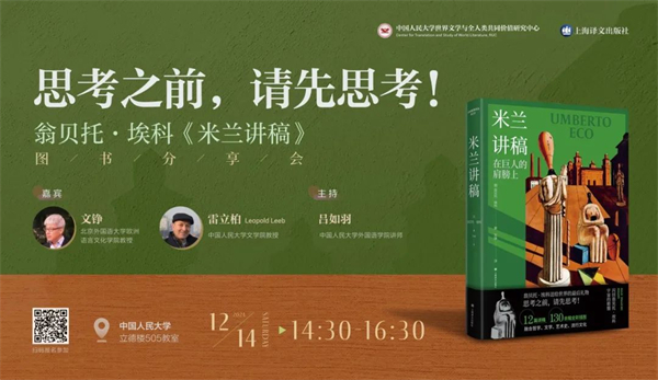 北京|思考之前,请先思考!——翁贝托·埃科《米兰讲稿》分享会