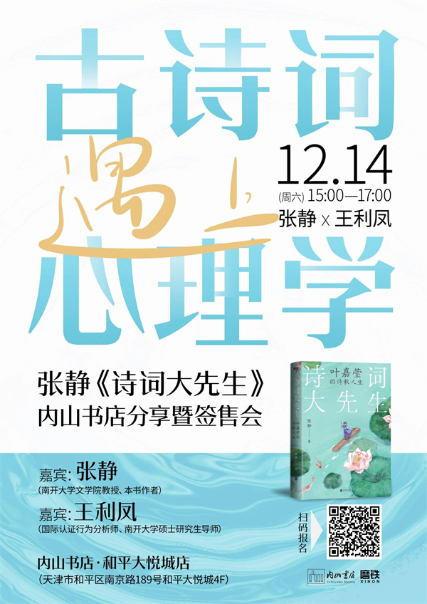 天津|古诗词遇上心理学——张静《诗词大先生》内山书店分享暨签售会