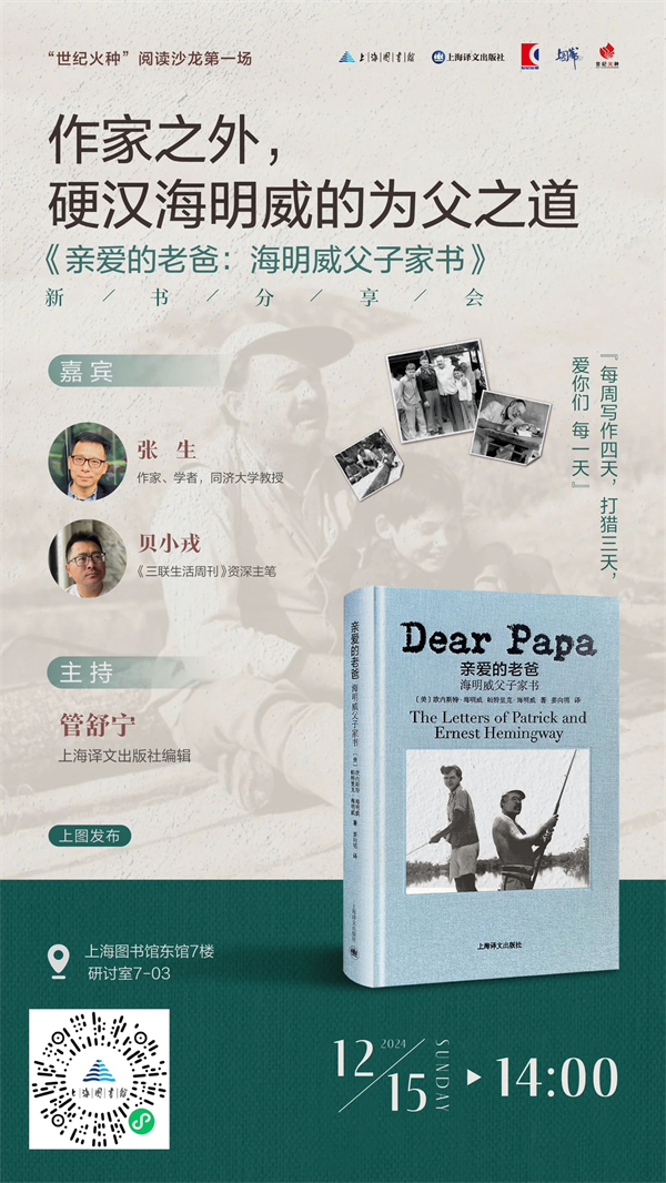 上海|作家之外,硬汉海明威的为父之道——《亲爱的老爸:海明威父子家书》新书分享会