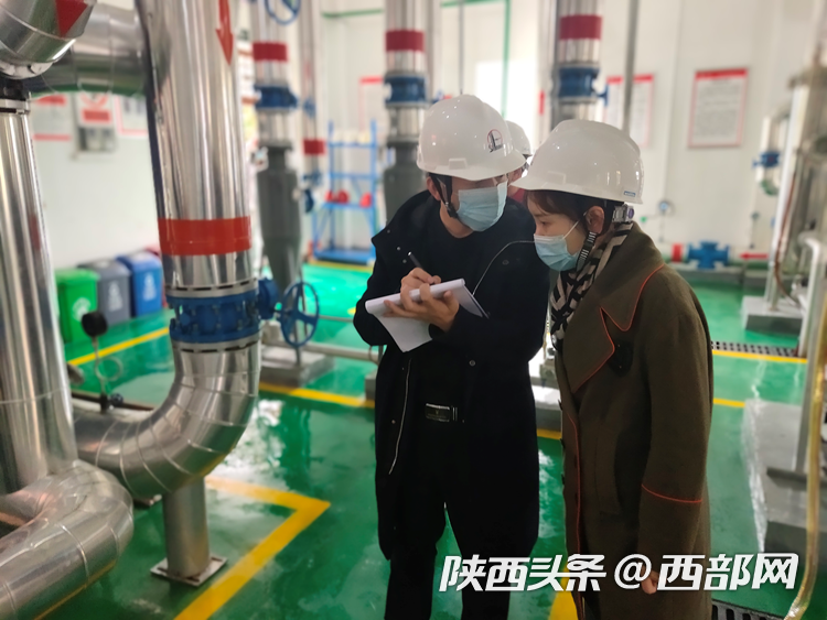 西安市城市管理和综合执法局工作人员检查供热设备运行情况。