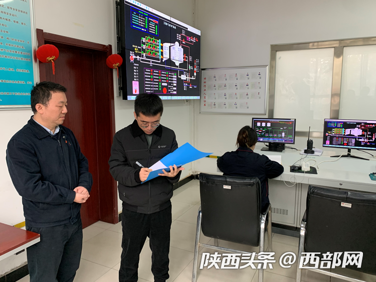 西安市城市管理和综合执法局工作人员对锅炉运行参数进行检查并作记录。