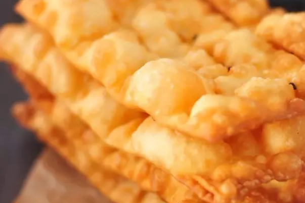 老北京小吃“薄脆”,这也是油炸食品,也称作“炸薄脆”。即薄又脆,但薄而不碎,脆而不艮,香酥可口。薄脆可以现制现吃,也可以捏碎与菜馅拌和当素馅的原料,现在通常放在煎饼中,与口感绵软的煎饼相得益彰。