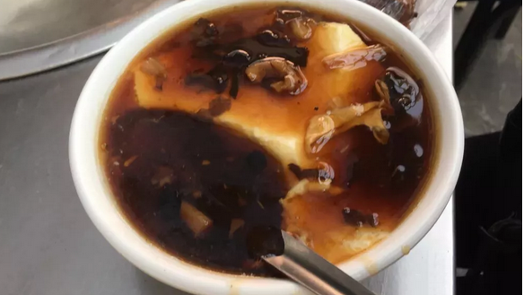 吃豆腐脑,必须浇上“卤汁儿”后食用。这卤汁儿有回、汉民之分。回民做的卤又有荤素之别。荤的是以羊肉,口蘑等为主。素的以黄花菜,木耳,面筋等为主料,其口味浓中透着鲜。