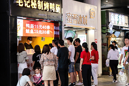 潮玩美食街,这里有饮品沙拉、日料、海鲜、西餐、卤味等,近400种极具特色的美食,你想吃的这里都可以满足你。