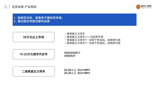 一、目前,35万元以上的市场还属于比较空的市场,1孩家庭主力用车35万元以上还没有;2孩家庭主力用车空间型车型很少。